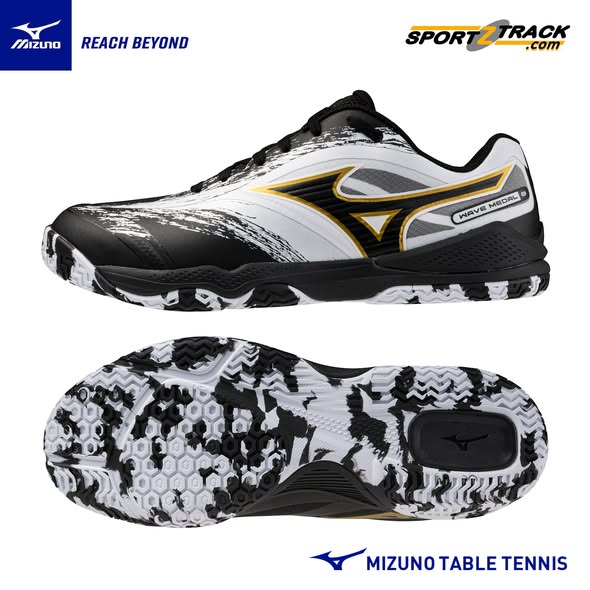 The Wave Medal 8 26SS Black White Gold Origami 81GA258212 isĀ a new 2026 Spring/Summer (26SS) release table tennis shoe in a black, white, and gold colorway. It is a high-performance model engineered for stability, cushioning, and agile court movement.Ā